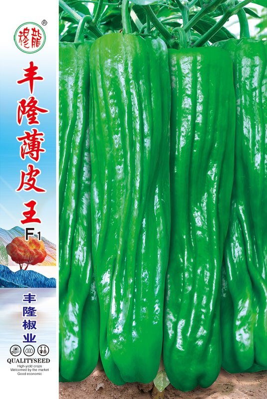 新选育的极早熟薄皮长灯笼型杂交一代品种,引进日本原种生产,微辣,薄皮大果,果色翠绿,植株生长势稳健,连续结果性能好。正常天气和正常肥水栽培条件下,商品果长20~25cm,横径5.0cm,辣味中等,口感好,果面褶皱美观且光亮,市场易销售,抗病性强,膨果速度快。采收前后期果形差异小,经济效益高。是目前薄皮大椒优秀的品种之一。