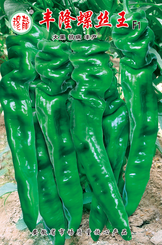 新选育的中早熟螺丝椒杂交一代,引进韩国原种生产,绿色、皮薄质脆、辣味浓、品质佳,耐湿、高产,膨果速度快,抗病性强,株高55-60cm,生长强健,连续结果能力强,果长28-32cm,果粗5cm左右。亩产6000kg以上。